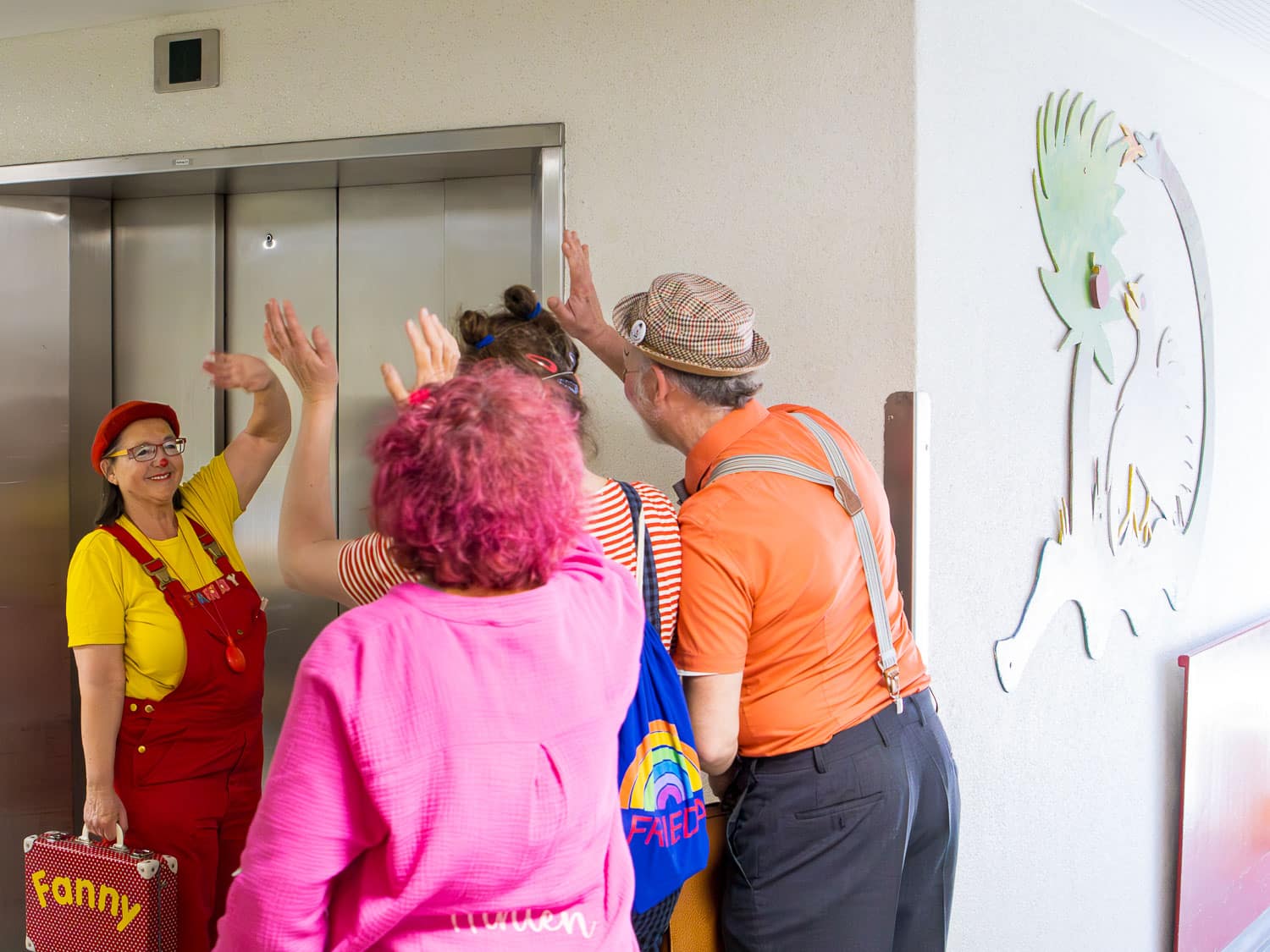 Die Frage habe ich schon lange nicht mehr gehört. Inzwischen ist es in Deutschland bekannt, dass es Clowns in Krankenhäusern gibt. Wenn wir jetzt auf die Stationen kommen, ist es eher Anerkennung, die wir hören. Uns wird höchstens gesagt, dass wir nicht in das Zimmer gehen sollen, wenn das Kind sehr krank oder ansteckend ist, sodass wir auch mit Mundschutz, Kittel und Handschuhen besser draußen bleiben. Wir werden oft schon von Kindern erwartet und nicht wenige lassen sich ihre Kontrolltermine extra am „Clownstag“ geben.
