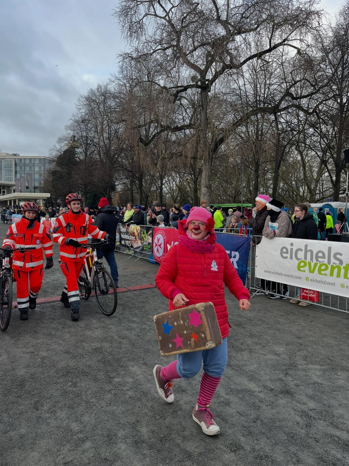 Die Clowns waren, bejubelt und angefeuert durch die vielen fröhlichen Menschen am Straßenrand oder im Umzug, in Hochform.